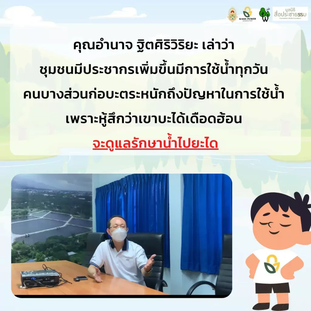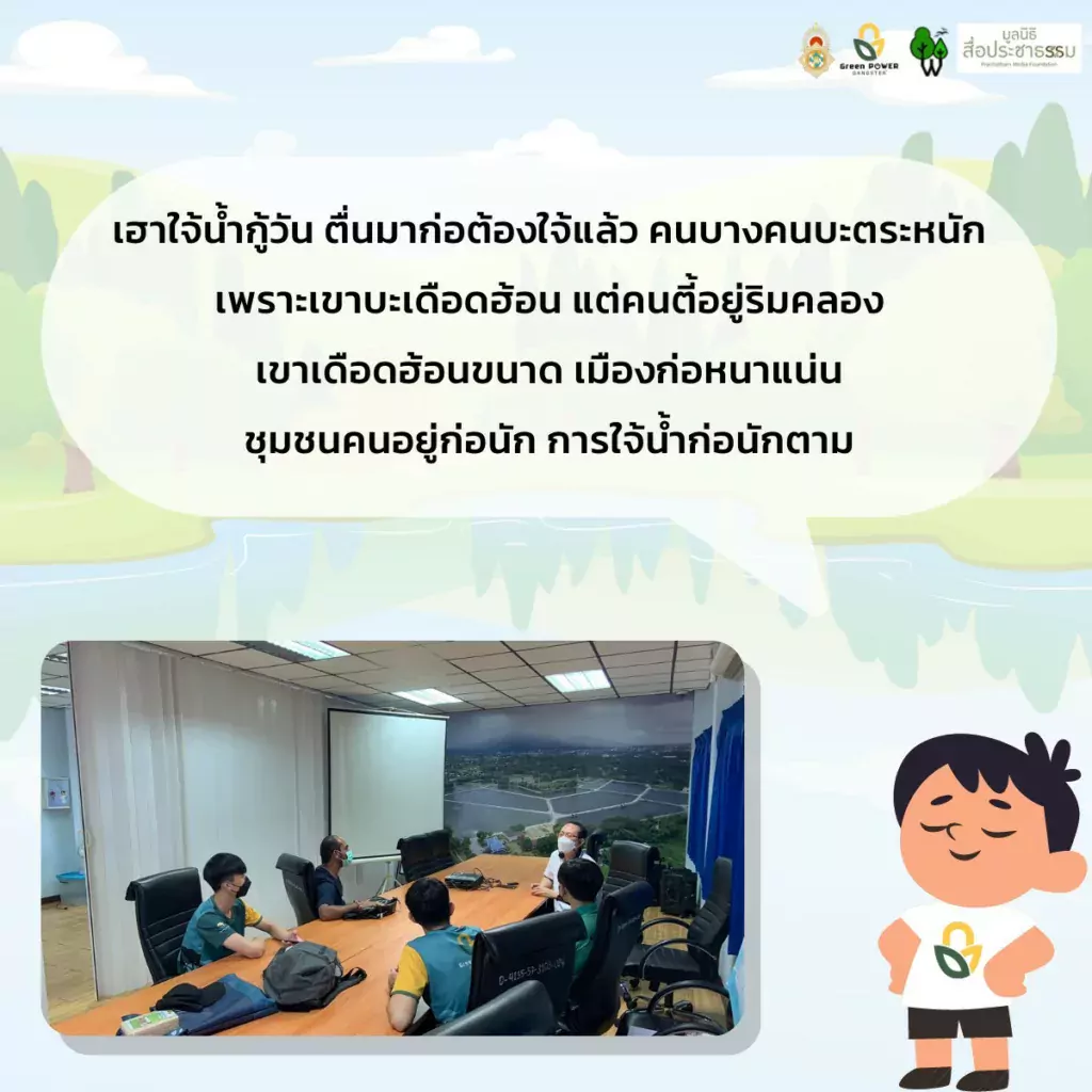 เราได้ไปที่โรงงานปรับปรุงคุณภาพน้ำองค์การจัดการน้ำเสีย มาแล้วได้ไปฟังถึงปัญหาของน้ำเสียว่ามันเกิดจากอะไร เป้าหมายที่อยากเราเล่าคืออยากให้ทุกคนตะหนักรู้ถึงปัญหาและช่วยกันดูแลรักษาแหล่งน้ำ ไม่ว่าเขาจะอยู่อาศัยใกล้แหล่งน้ำหรือไม่ใกล้แหล่งน้ำก็อยากให้เขาช่วยกัน ใส่ใจและดูแลรักษาแหล่งน้ำ