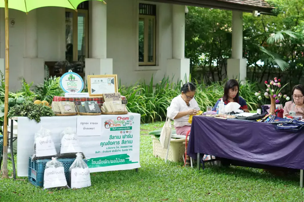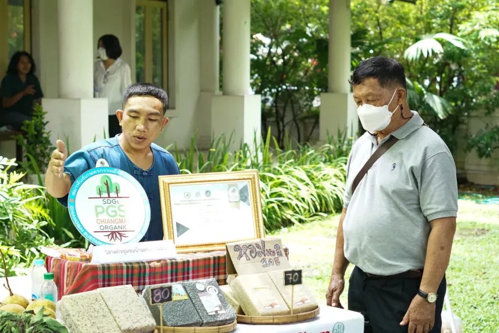 ศรัณยา กิตติคุณไพศาล สวนบัวชมพู อ.เชียงดาว บอกเล่าประสบการณ์การกลับมาทำการเกษตร ณ บ้านเกิด โดยใช้ศาสตร์พระราชาในการปรับเปลี่ยนวิธีการทำเกษตร ยึดหลัก “ปลูกทุกอย่างที่กิน กินทุกอย่างที่ปลูก” ก่อนจะเริ่มปลูกพืชเพื่อการขาย โดยสำรวจตลาด และพัฒนาสินค้า เพื่อสร้างอาชีพและพัฒนาเศรษฐกิจชุมชนทั้งในส่วน ต้นน้ำ (การผลิดวัตถุดิบ) กลางน้ำ (การแปรรูปสินค้า) และปลายน้ำ (การทำแพคเกจ) โดยกระบวนการทั้งหมดเกิดขึ้นด้วยฝีมือคนในชุมชนเอง เพราะปัญหาอย่างหนึ่งที่ ศรัณยา กล่าวถึง คือการบริหารจัดการโดยคนภายนอก ที่บางครั้งก็เอารัดเอาเปรียบคนในชุมชน อีกทั้งตนยังคาดหวังการเชื่อมชุมชนเข้ากับเส้นทางการท่องเที่ยวอีกด้วย