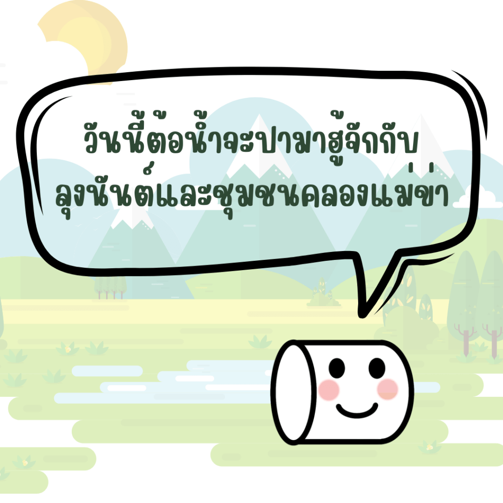 เราจะเล่าเพื่อสะท้อนปัญหาน้ำเสียที่เกิดขึ้นบนคลองแม่ข่าและเล่าเพื่อให้หน่วยงานที่มีส่วนในการจัดการเข้ามาจัดการดูแลต่อไป รวมถึงจะเล่าผ่าน ‘ต้อน้ำ’ หรือน้องท่อน้ำที่เป็นตัวการ์ตูนนำเที่ยวคลองแม่ข่าในครั้งนี้
