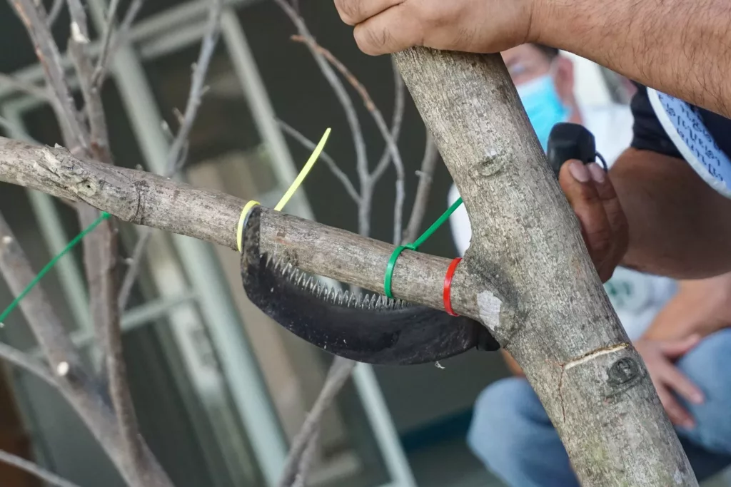 “การใช้มีดตัดกิ่งไม้จะทิ้งรอยบากไว้บนไม้ไว้ จะส่งผลเสียต่อสุขภาพต้นไม้ในอนาคต และโอกาสที่แผลจะปิดน้อย ดังนั้นการใช้เลื่อยจึงเป็นอุปกรณ์ที่ดีกว่า”