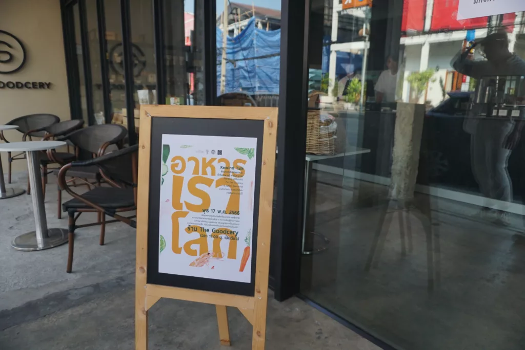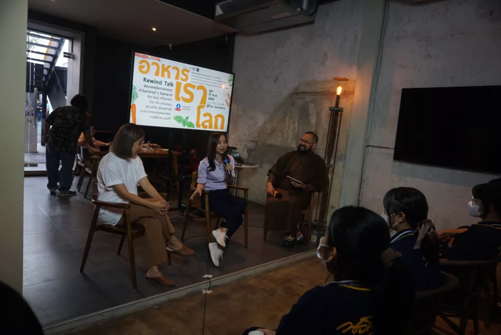รวมถึงวงคุย Rewind Talk ย้อนรอยเส้นทางอาหาร ทำไมอาหารดี ๆ จึงหายาก ทำไมเกษตรกรถึงไม่อยากปลูกพืชผักอินทรีย์ ทำไมตลาดท้องถิ่น และร้านชำใกล้บ้านถึงหายไป แล้วเราในฐานะผู้บริโภคจะทำอย่างไรเพื่อให้เราทุกคนได้เข้าถึงอาหารดี ๆ ในราคาที่เหมาะสม และเป็นมิตรต่อสิ่งแวดล้อม ซึ่งผู้ร่วมพูดคุยได้แก่ ผศ.ดร.ณภัทร เรืองนภากุล อ.ประจำคณะสารสนเทศและการสื่อสาร ม.แม่โจ้ และภัทรานิษฐ์ ศรีจันทร์ดร เจ้าของร้าน The Goodcery