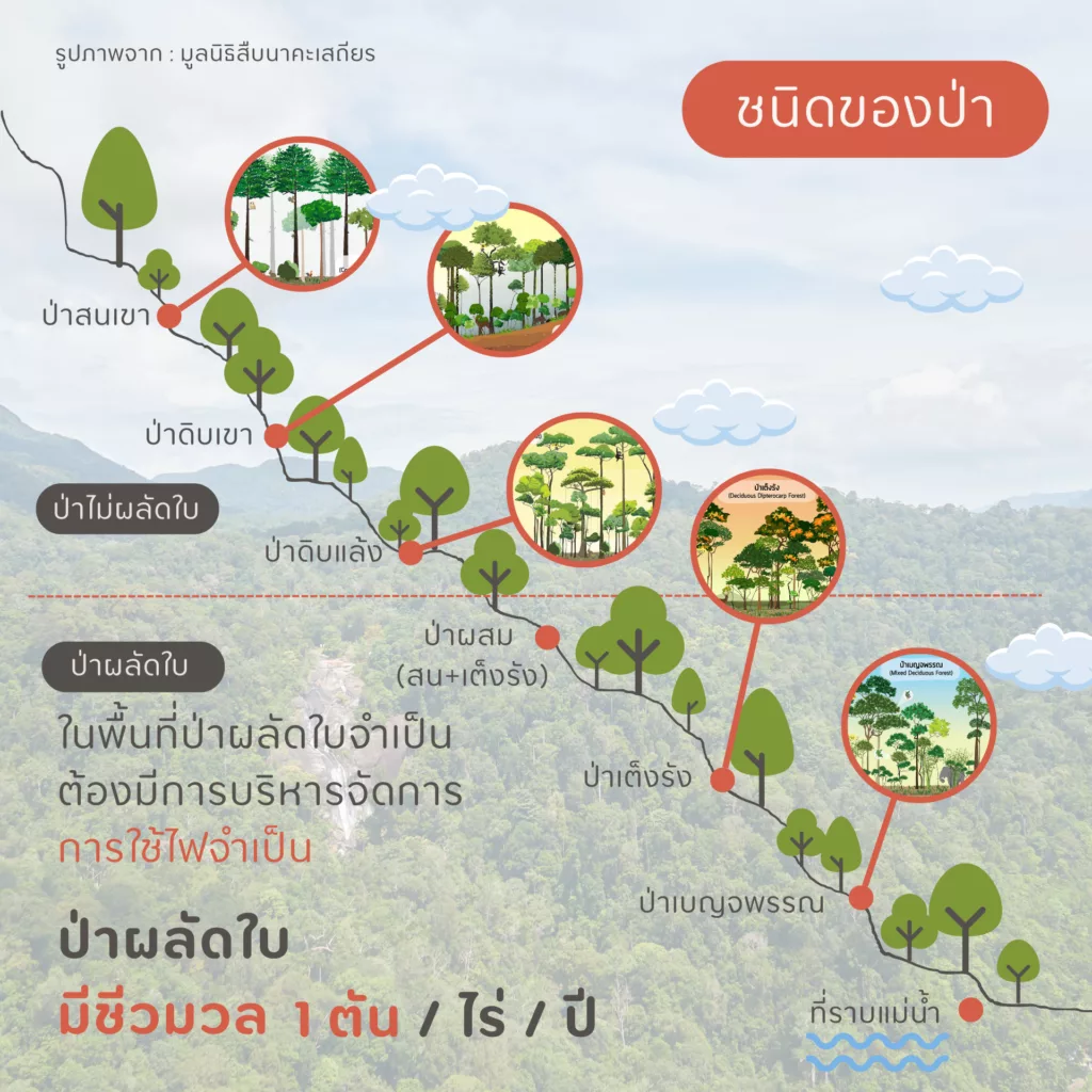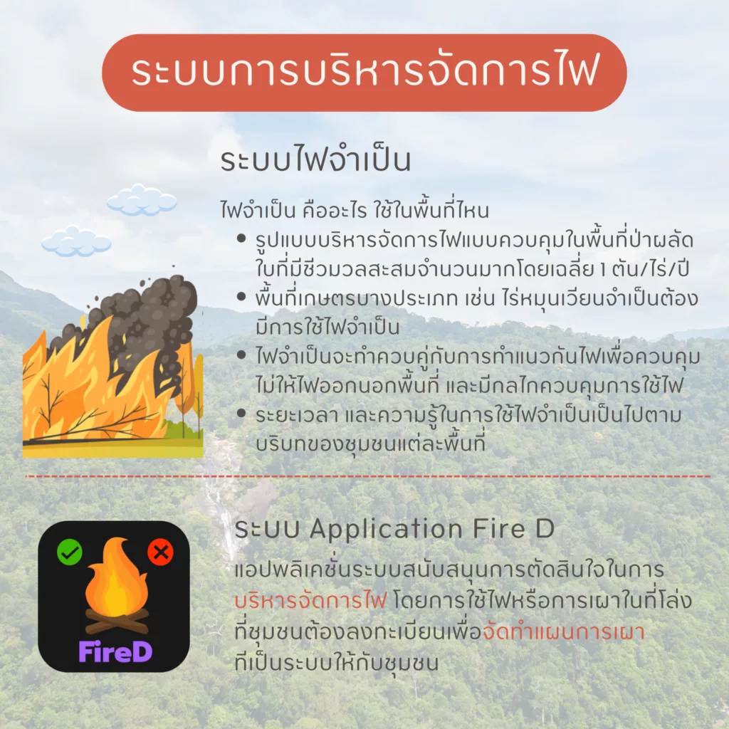 หมดจากฤดูหมอกควัน การพูดถึงฝุ่น PM 2.5 ก็จางลง แต่เมื่อฤดูหมอกควันมาถึง หนึ่งในประเด็นที่คนในสังคมพูดถึงแทบจะทุกครั้งคือไฟป่า และต่างชี้นิ้วไปว่าไฟป่าคือต้นตอการเกิดขึ้นของปัญหาหมอกควัน แต่ในมุมกลับกันด้วยวิธีคิดเช่นนี้ทำให้เกิดความคิดว่าไฟป่าคือสิ่งที่ต้องควบคุมเด็ดขาด ทั้ง ๆ ที่จริงแล้วนักนิเวศวิทยา และชาวบ้านที่อยู่กับป่ามานานมีความเห็นว่าพื้นที่ป่าบางประเภท เช่น ป่าผลัดใบที่มีชีวมวลสะสมจำนวนมาก โดยใน จ.เชียงใหม่มีชีวมวลสะสมโดยเฉลี่ยถึง 1 ตัน/ไร่/ปี เมื่อสะสมจำนวนมากหากควบคุมไม่ให้ไฟเข้าเลย จะยิ่งสุ่มเสี่ยงต่อการเกิดไฟใหญ่ และลุกลามไปยังไปป่าสนเขา ป่าดิบแล้ว ดิบชิ้นที่ยากต่อการการควบคุมเมื่อขึ้นไปยังพื้นที่เขาสูงชัน