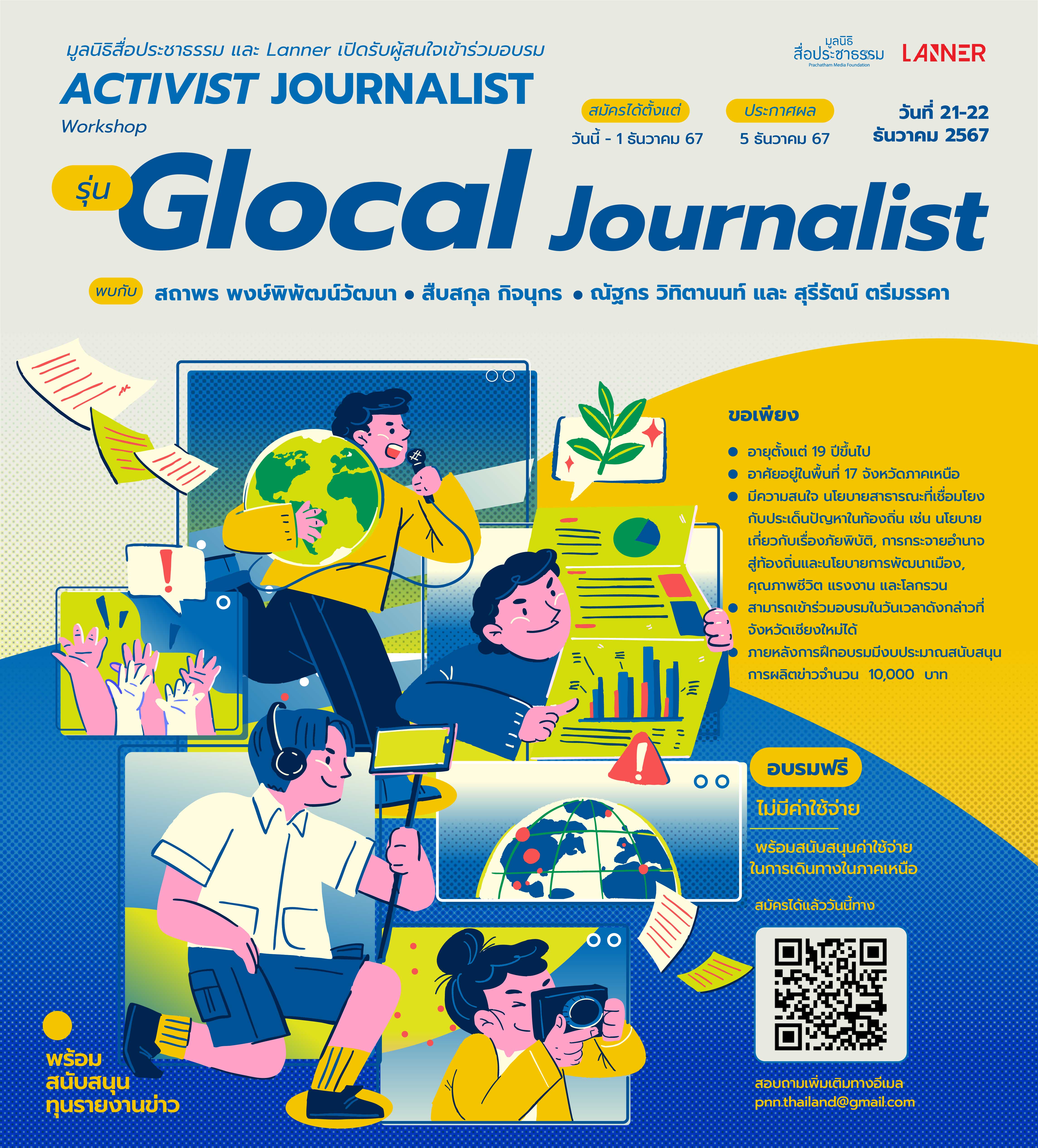 และเราขอขอบคุณในความสนใจเข้าร่วมอบรม Activist Journalist รุ่น Glocal Journalist เนื่องจากมีผู้สนใจสมัครเข้ามาเป็นจำนวนมาก จึงไม่สามารถรองรับผู้สมัครได้ทั้งหมด แต่เรายังมีโครงการอื่น ๆ ซึ่งท่านอาจสนใจในครั้งต่อไป สามารถติดตามได้ทางเว็บไซต์ หรือ ช่องทางโซเชียลมีเดียของเรา